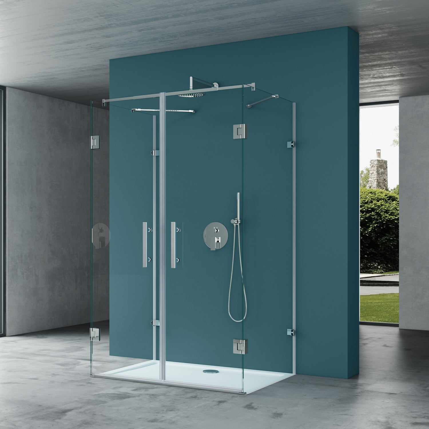 glasvilla Box Doccia a U, Cabina Bagno in Vetro Trasparente 8mm con Porta Girevole Box Cabina Doccia Angolare Ravenna40UK