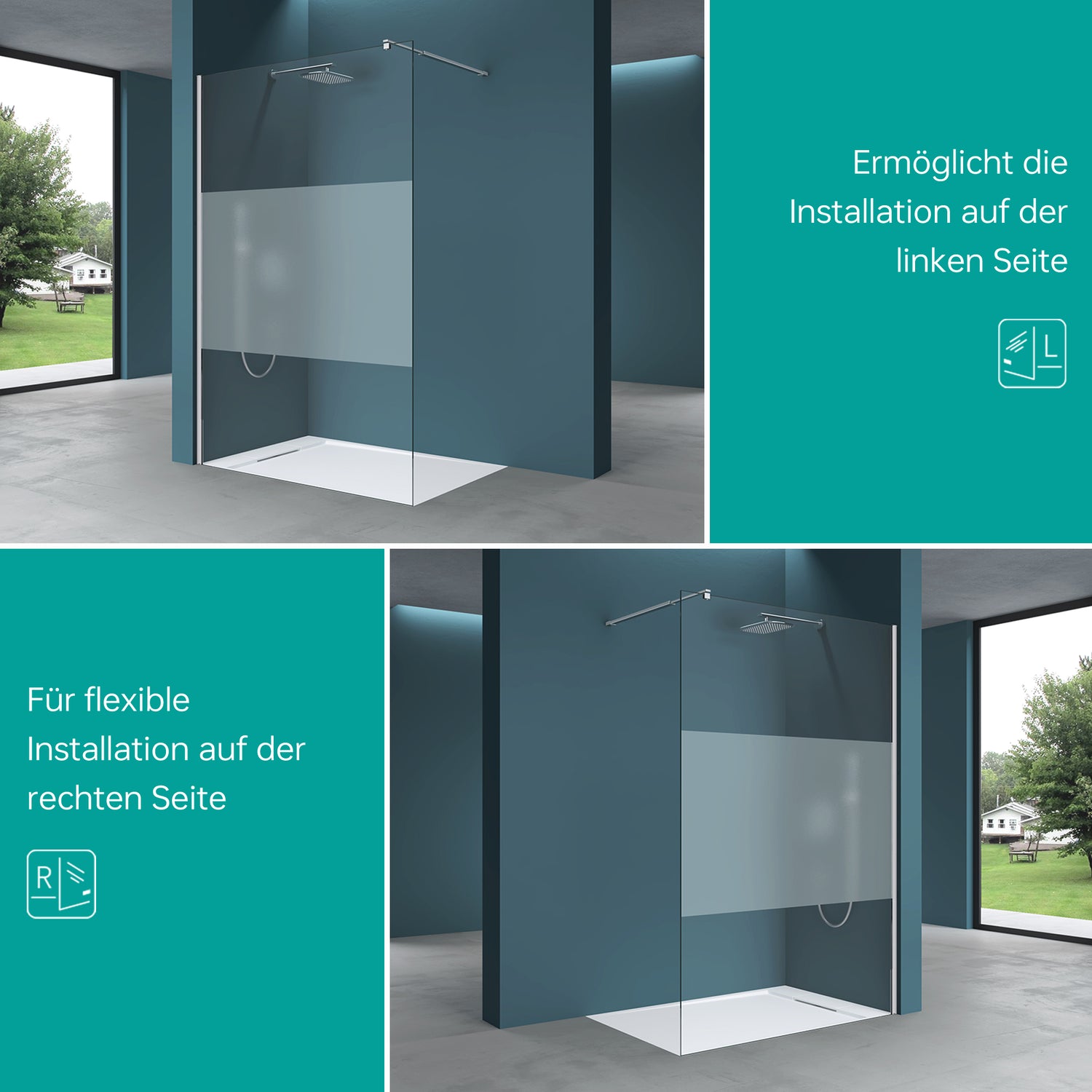 glasvilla Box Doccia Walk-In, Parete Cabina Doccia in Vetro 10mm di Sicurezza ESG con Rivestimento Nano Bremen2MS