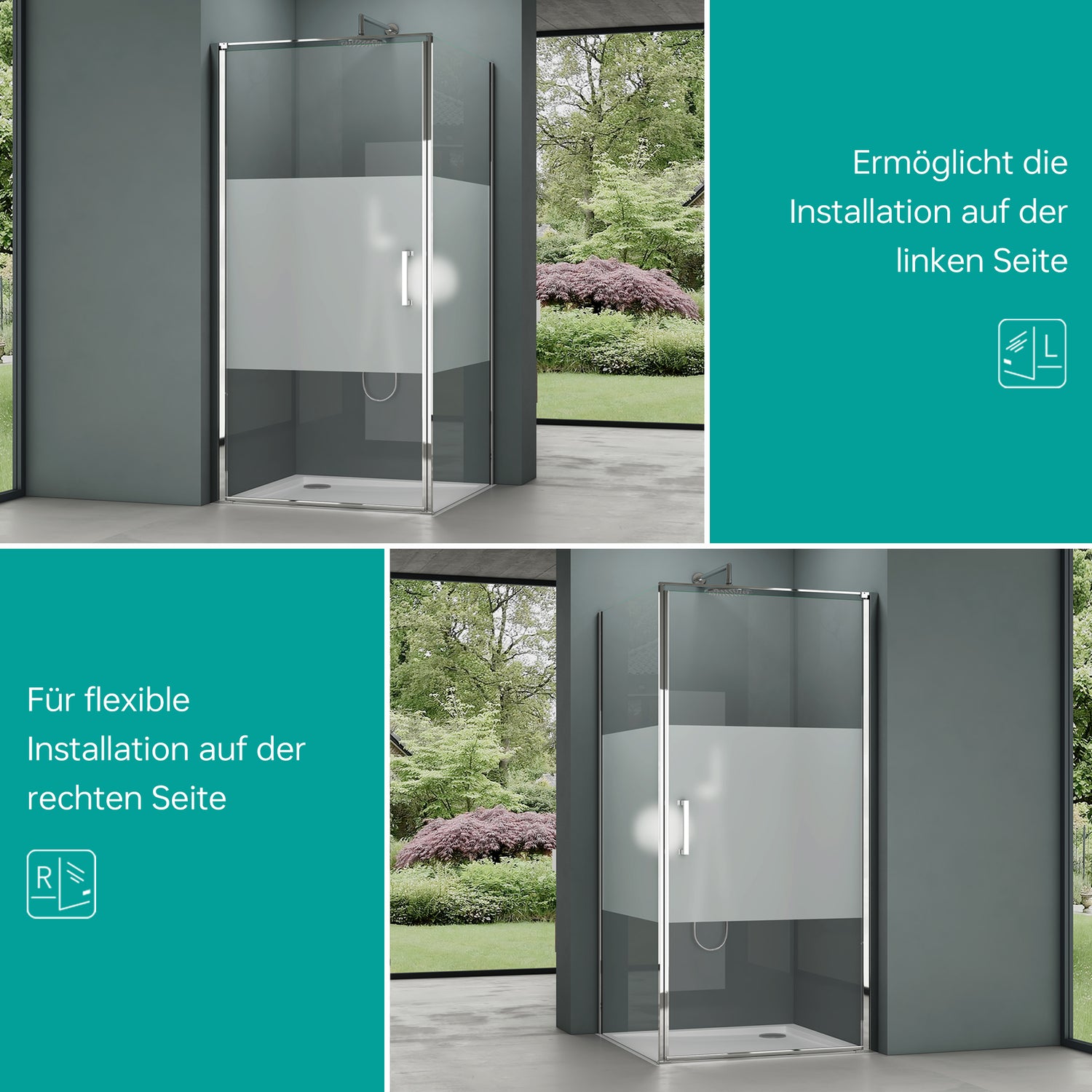 glasvilla Box Doccia in Vetro Parzialmente Smerigliato 8 mm Box Doccia con Meccanismo Alza/Abbassa e Porta Girevole Box Cabina Doccia Angolare Ravenna36MS-plus