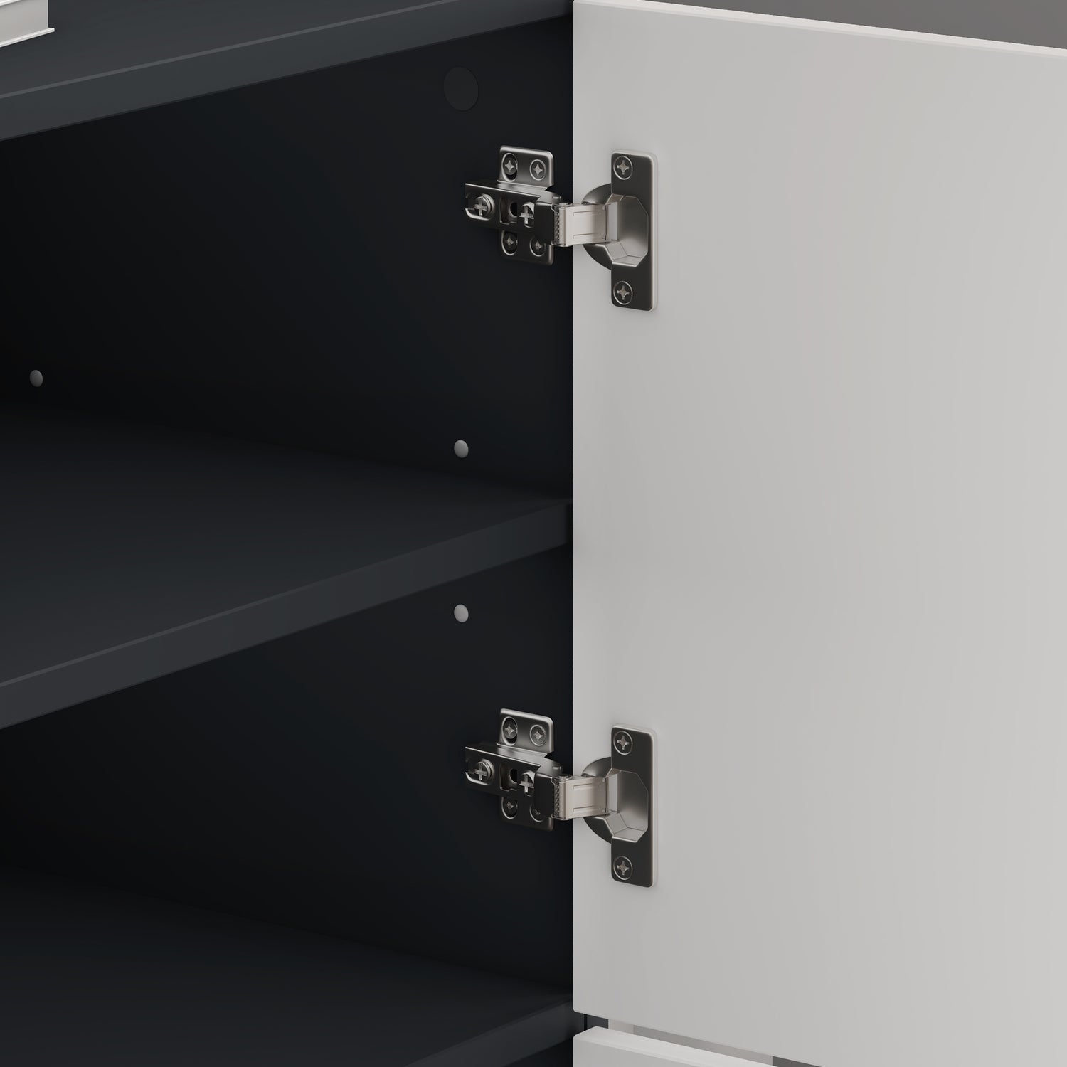 Materiali di Alta Qualità: la scarpiera è realizzata con pannelli E1 ecologici e privi di vernice. Le cerniere in metallo di alta qualità garantiscono stabilità e durata del mobile.