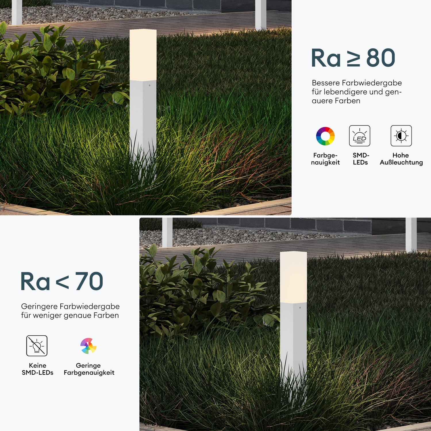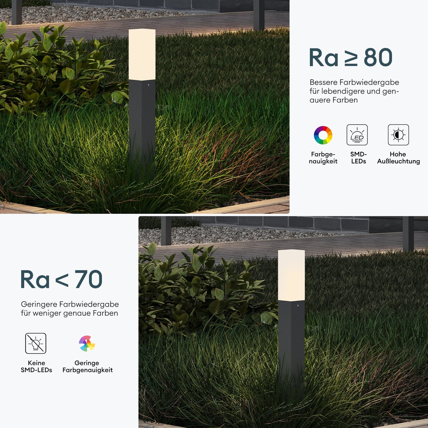 - Hochwertige Materialien: Die Außenlampen sind mit einer speziellen Pulverbeschichtung versehen. Und Aluminiumboden ist sehr Rostresistent und stabi.