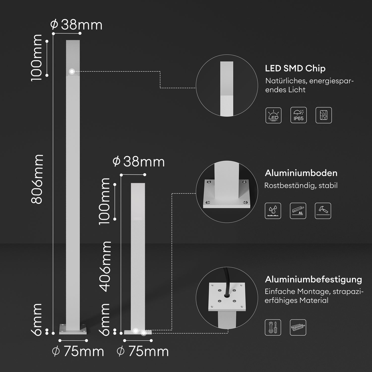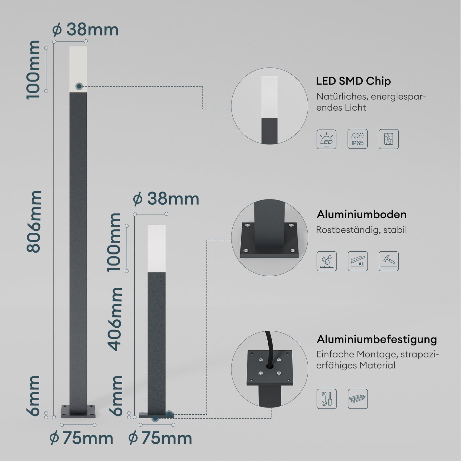 - Energiesparend und wetterfest: LED-Lichtquelle mit geringer Wattzahl, aber hoher Leuchtkraft. IP65-zertifiziert, widersteht extremen Wetterbedingungen.