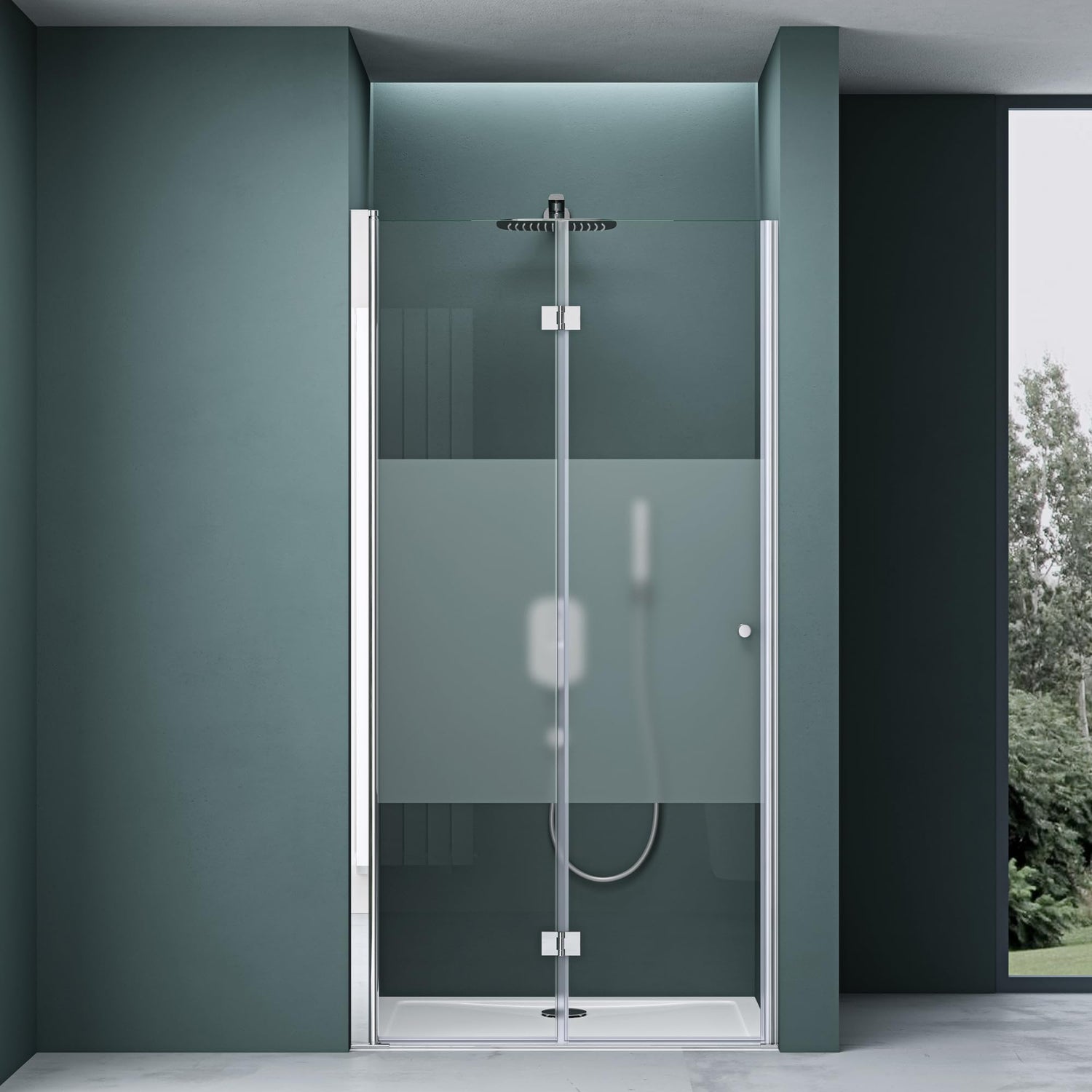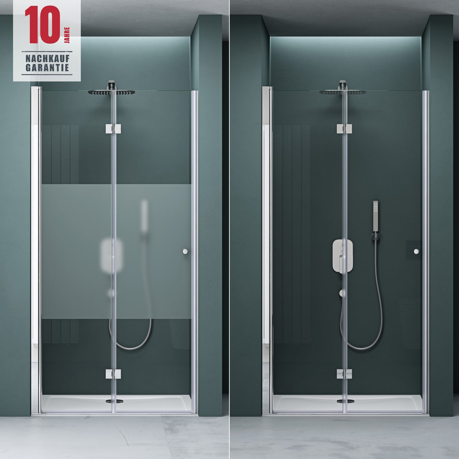 glasvilla Duschtür Nischentür dusche Duschabtrennung Duschkabine mit Drehfalttür ESG-Sicherheitsglas inkl. NANO-Beschichtung in Klarglas und Teilsatiniert Teramo26K+MS
