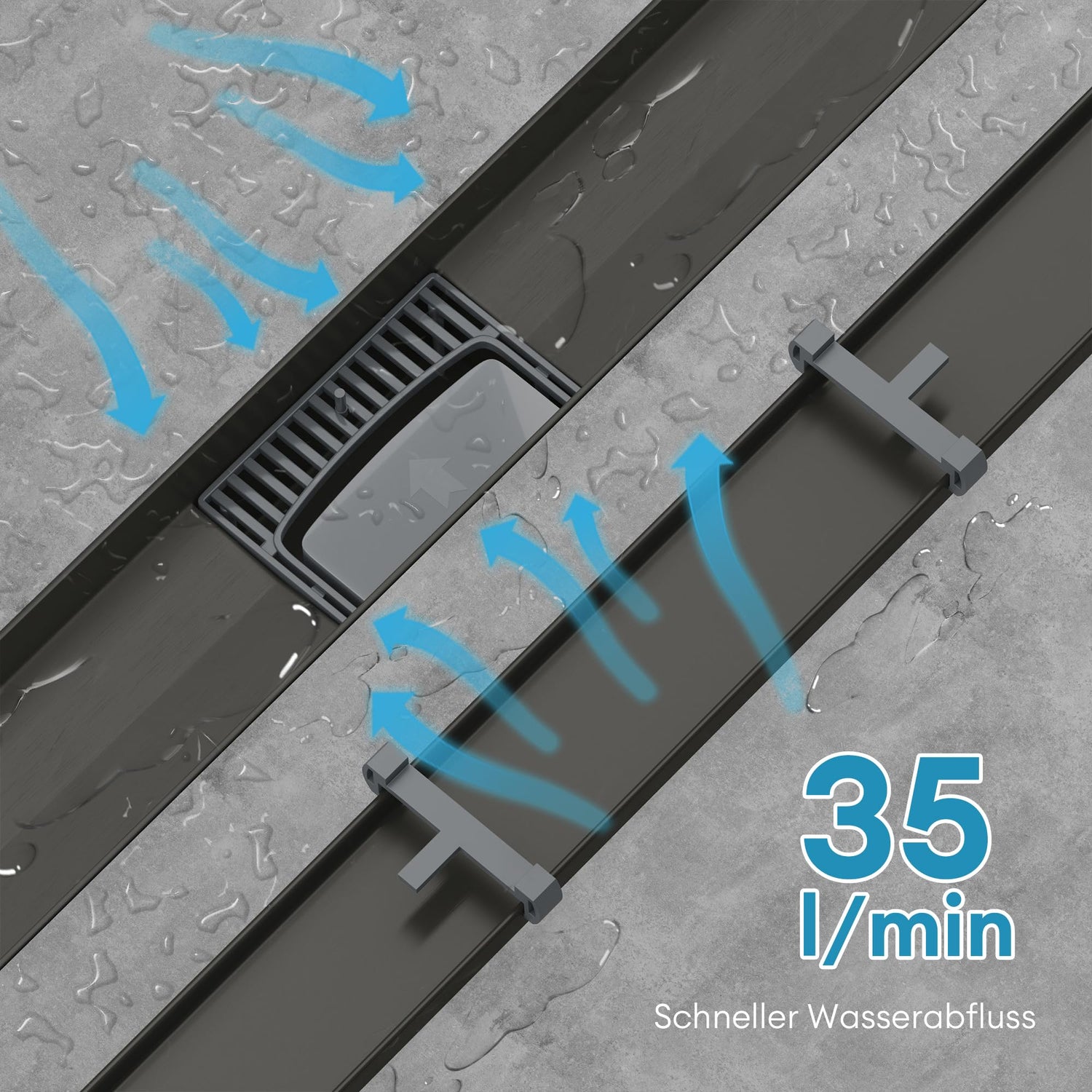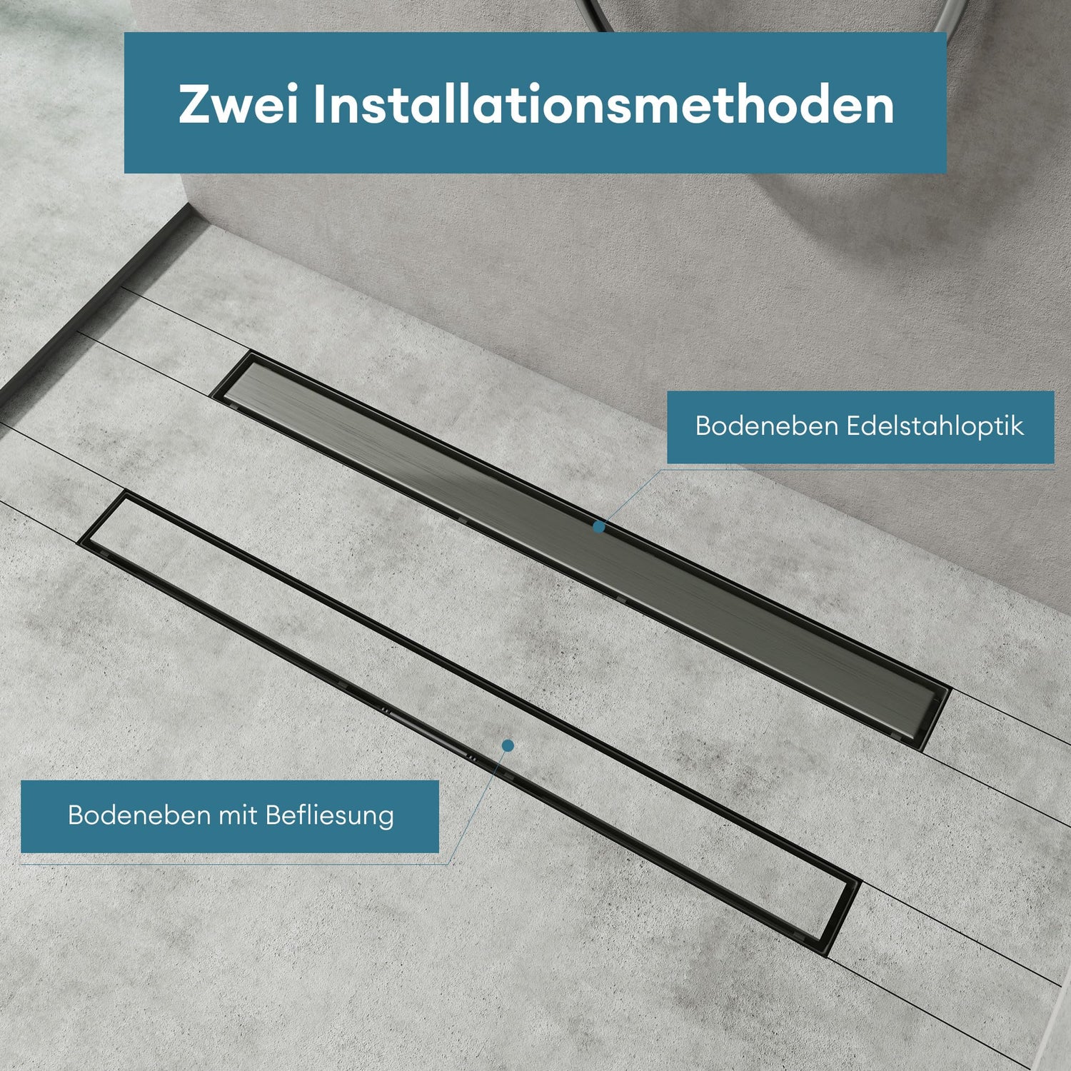 glasvilla Duschrinne Bodenablauf aus Edelstahl | Komplettset Ablaufrinne für Badezimmer | Befliesbar Wasserabfluss 35L/min | Haarsieb KE110