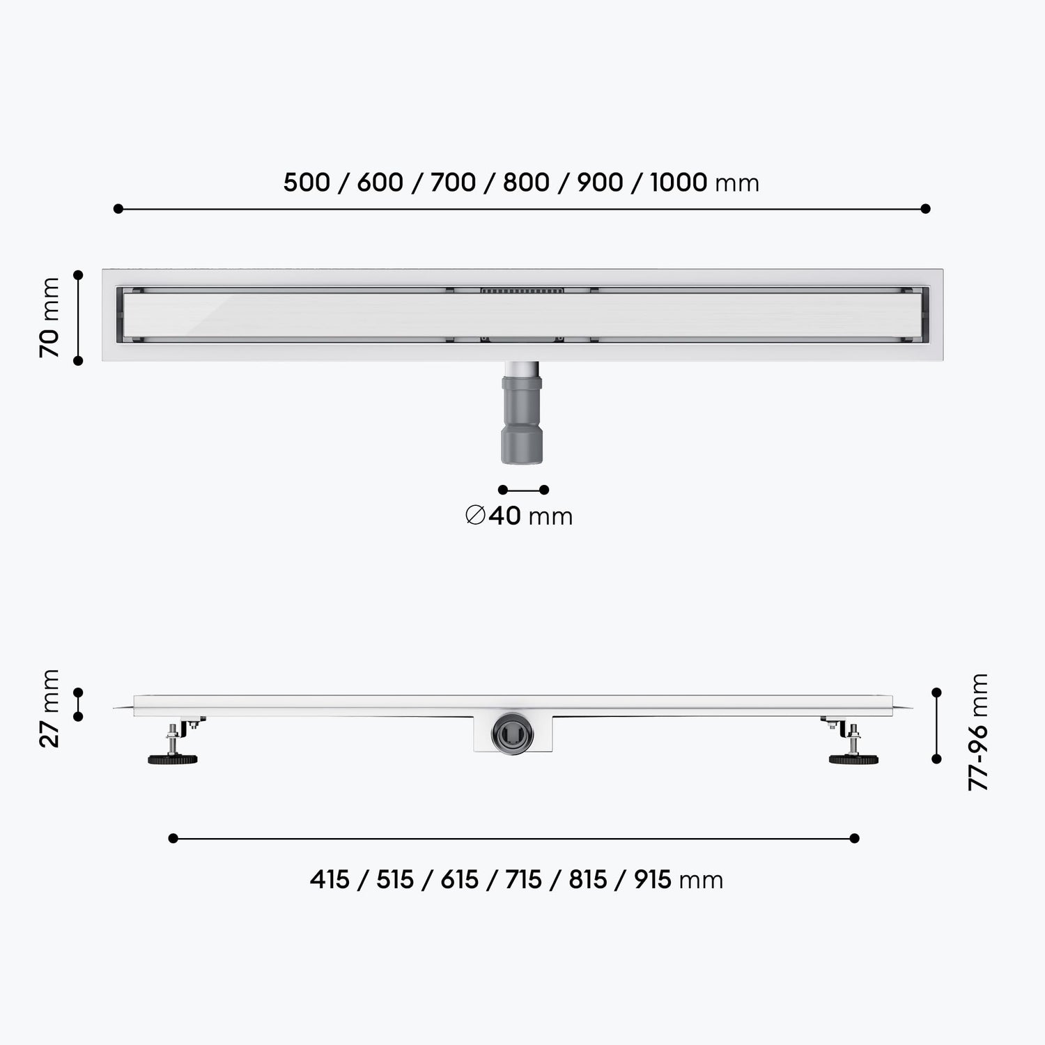 Höhenverstellbarer Einstellfuß: Dank des praktischen Einstellfußes lässt sich die Duschrinne mühelos in der Höhe von 50 mm bis 69 mm anpassen.