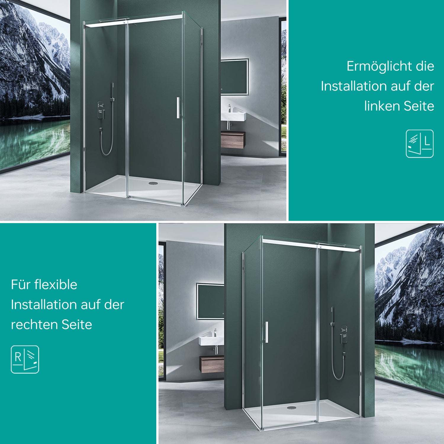 galsvilla Duschkabine Duschabtrennung 8mm Sicherheitsglas mit NANO Eck-Dusche mit Schiebetür Ravenna18