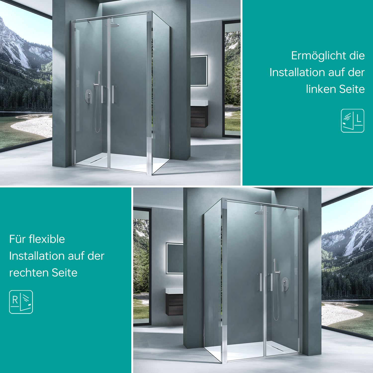 glasvilla Duschkabine Chrom und Schwarz Duschabtrennung mit Drehtür Hebe-Senk-Mechanismus 8mm ESG-Sicherheitsglas Nano-Beschichtung Ravenna66K