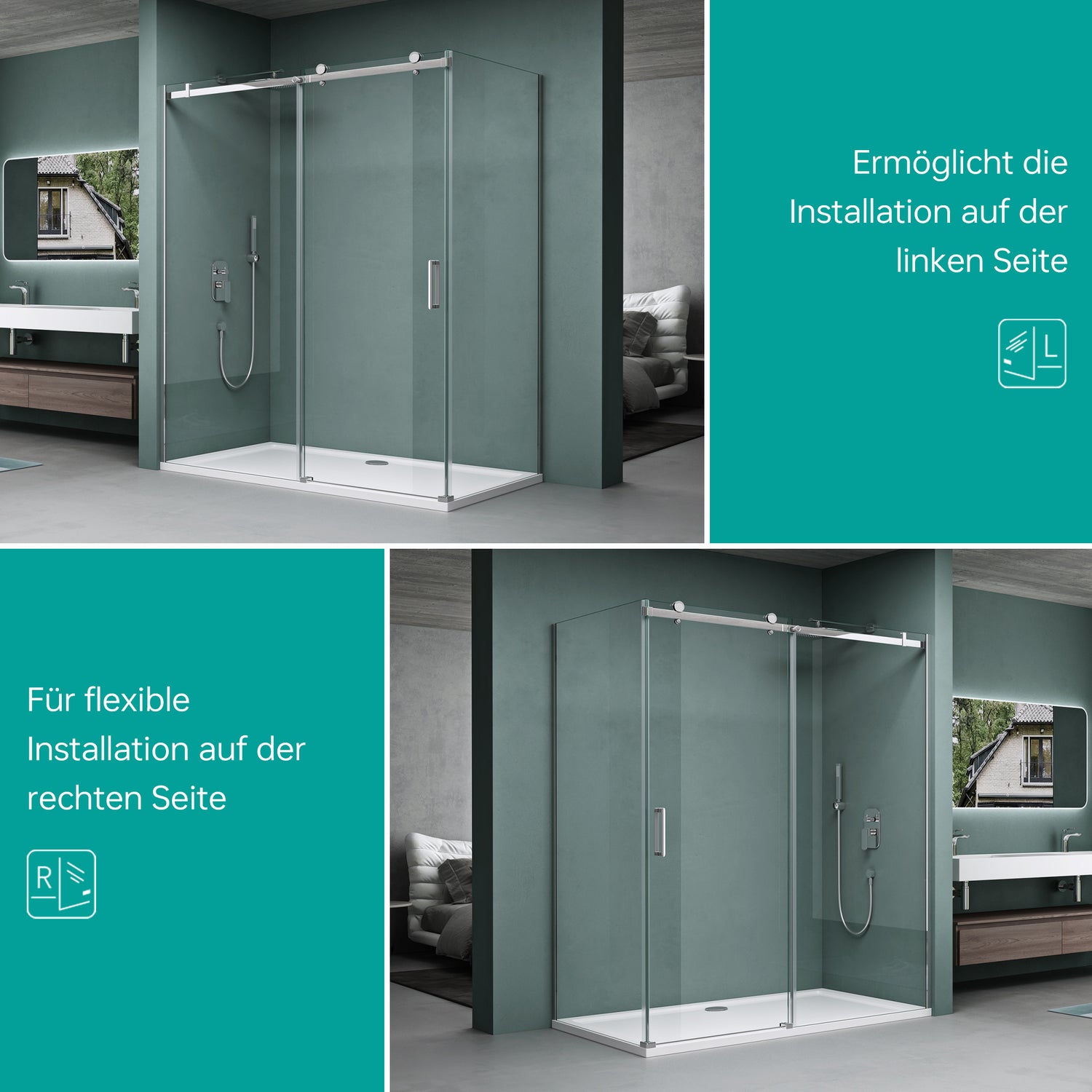 Diese Dusche kann rechts- und linksseitig montiert werden.