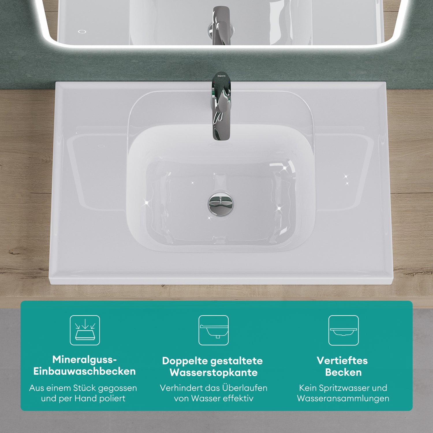 glasvilla Waschbecken Glänzend Weiß Einbauwaschbecken Waschtisch Mineralguss Rechteckig Waschplatz Col3601