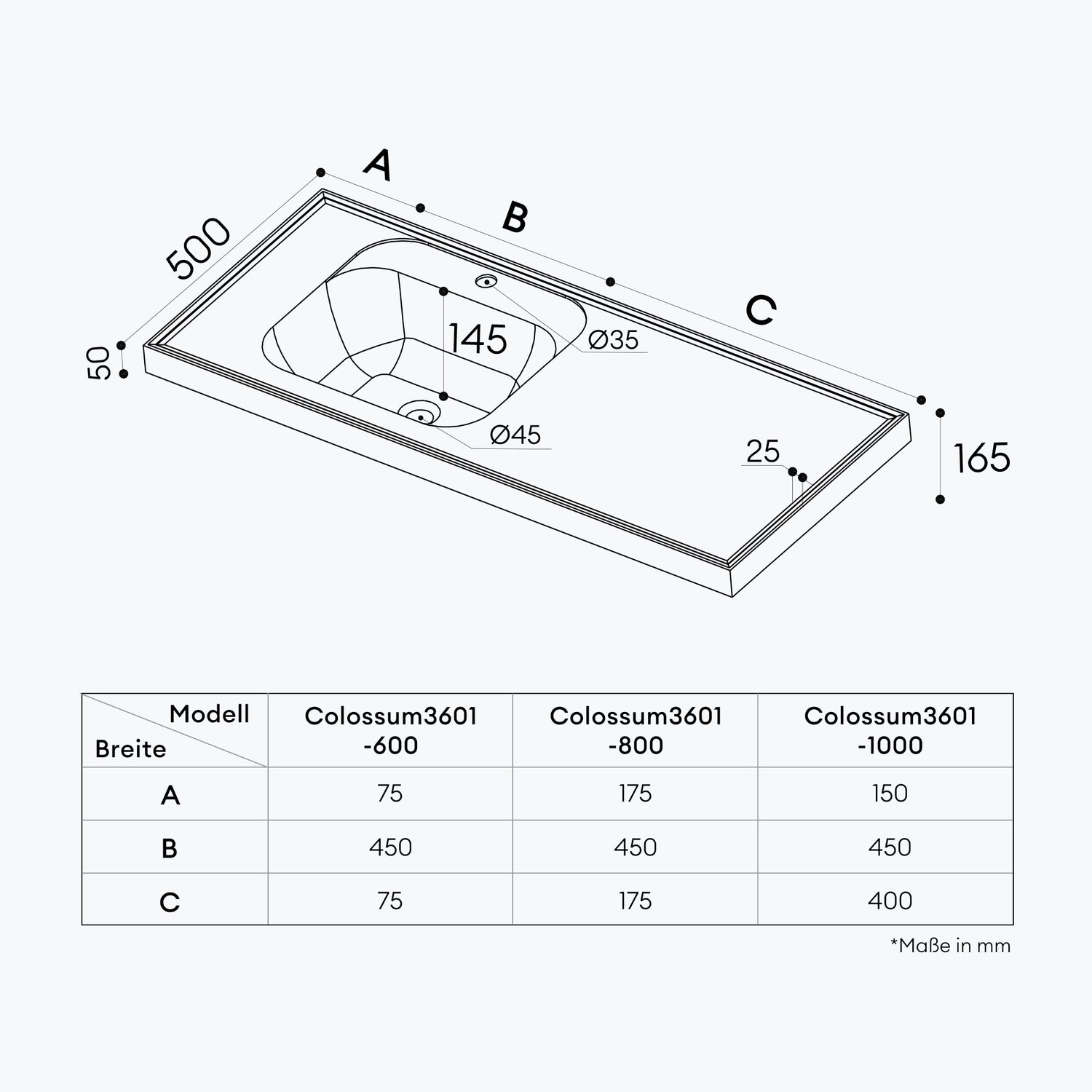glasvilla Waschbecken Glänzend Weiß Einbauwaschbecken Waschtisch Mineralguss Rechteckig Waschplatz Col3601 - 60cm ist auf Lager und wird versandt, sobald es wieder verfügbar ist