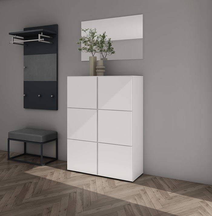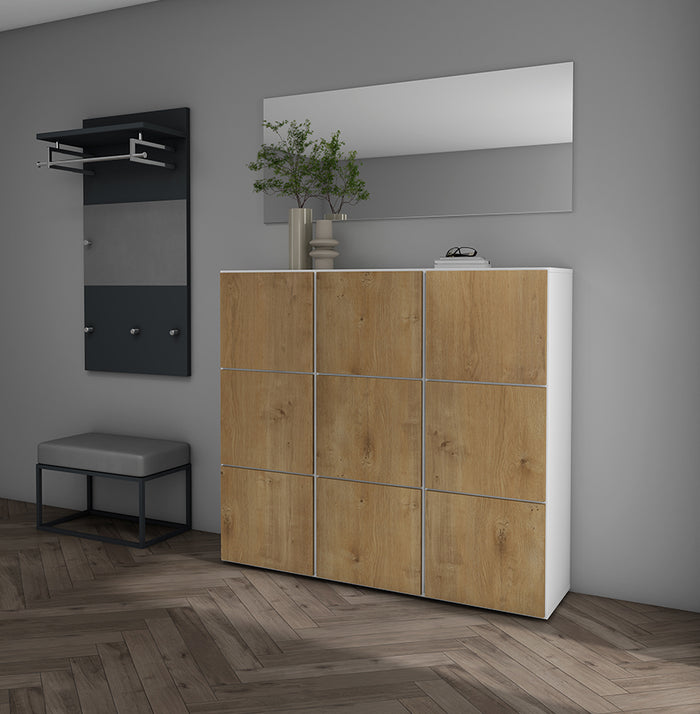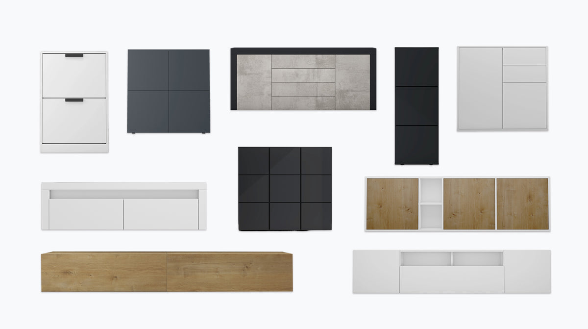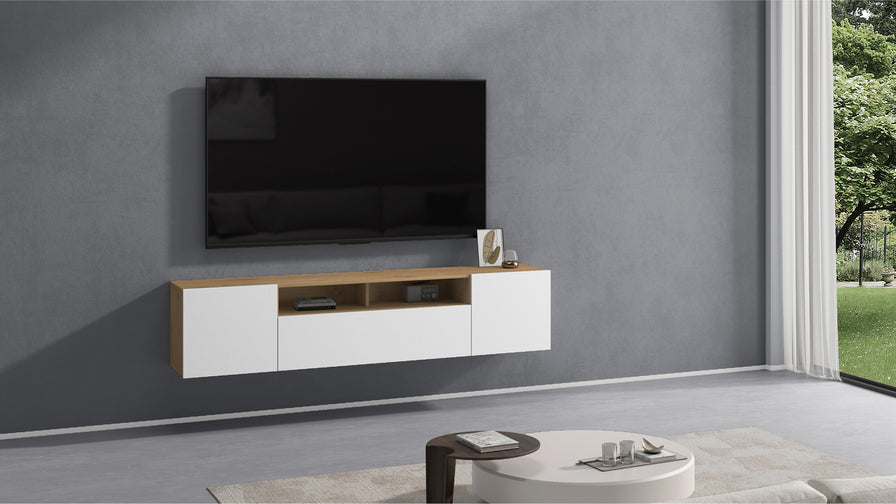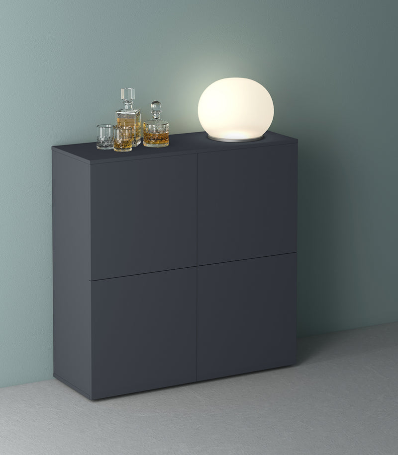 160cm Schrank mit zwei Schubladen. Halboffener Stauraum zur gezielten Aufbewahrung von Alltagsgegenständen, logisch aufgeteilt und leicht zu bedienen.