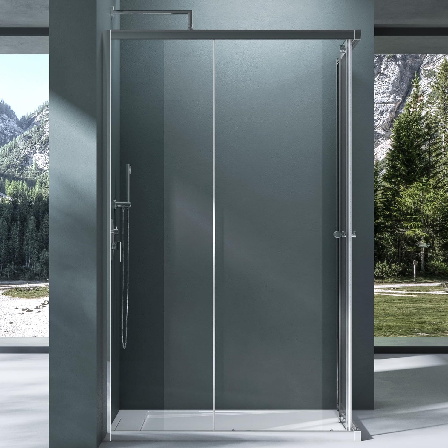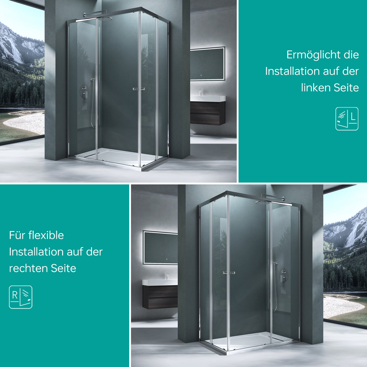 glasvilla Duschkabine mit Doppel-Schiebetür Duschtür Eckeinstieg Echtglas Lotuseffekt 6mm ESG-Sicherheitsglas Ravenna16K