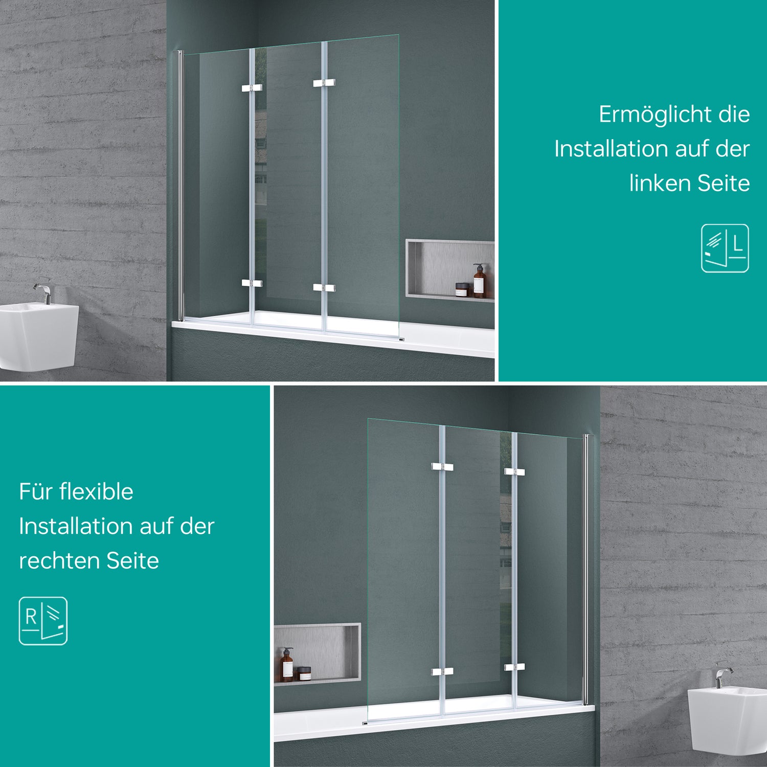 glasvilla Duschwand für Badewanne Badewannenwand Badewannenfaltwand 6mm Sicherheitsglas mit NANO-Versiegelung Badewannenaufsatz Badewannentrennwand Cortona116