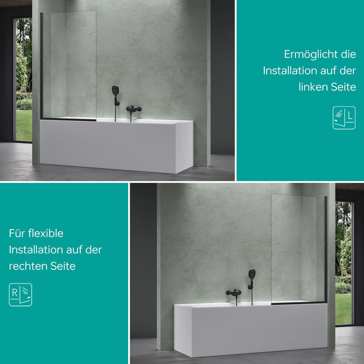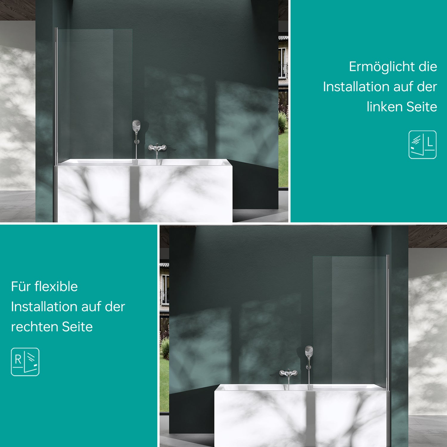 glasvilla Duschwand für Badewanne Badewannenwand Sicherheitsglas mit NANO-Versiegelung Badewannentrennwand Badewannenaufsatz 80x140cm Cortona201