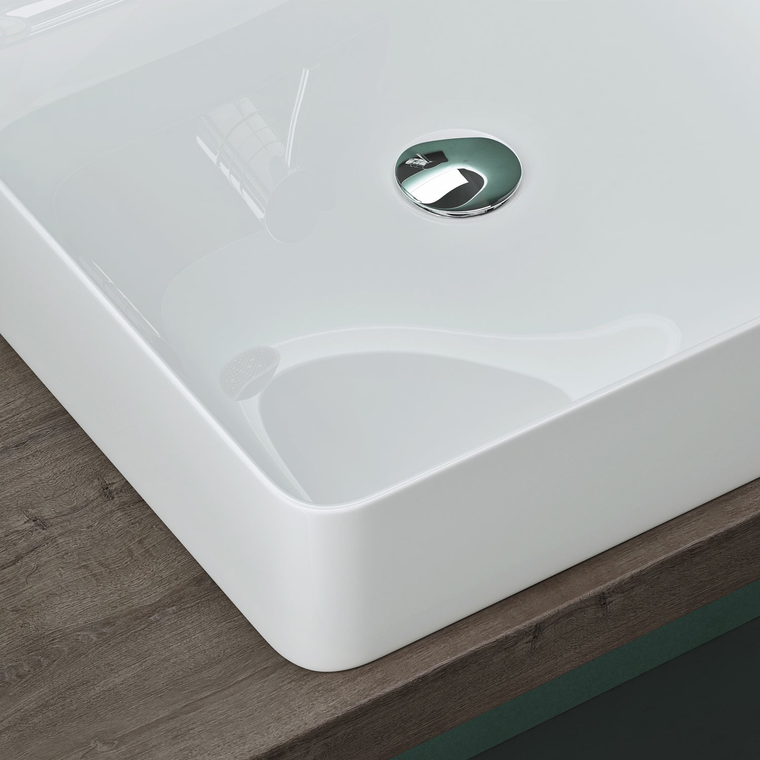 Das Design ist sehr schlicht, das gradlinige Design ist momentan sehr gefragt und somit sind Sie mit diesem Waschbecken auf der sicheren Seite.