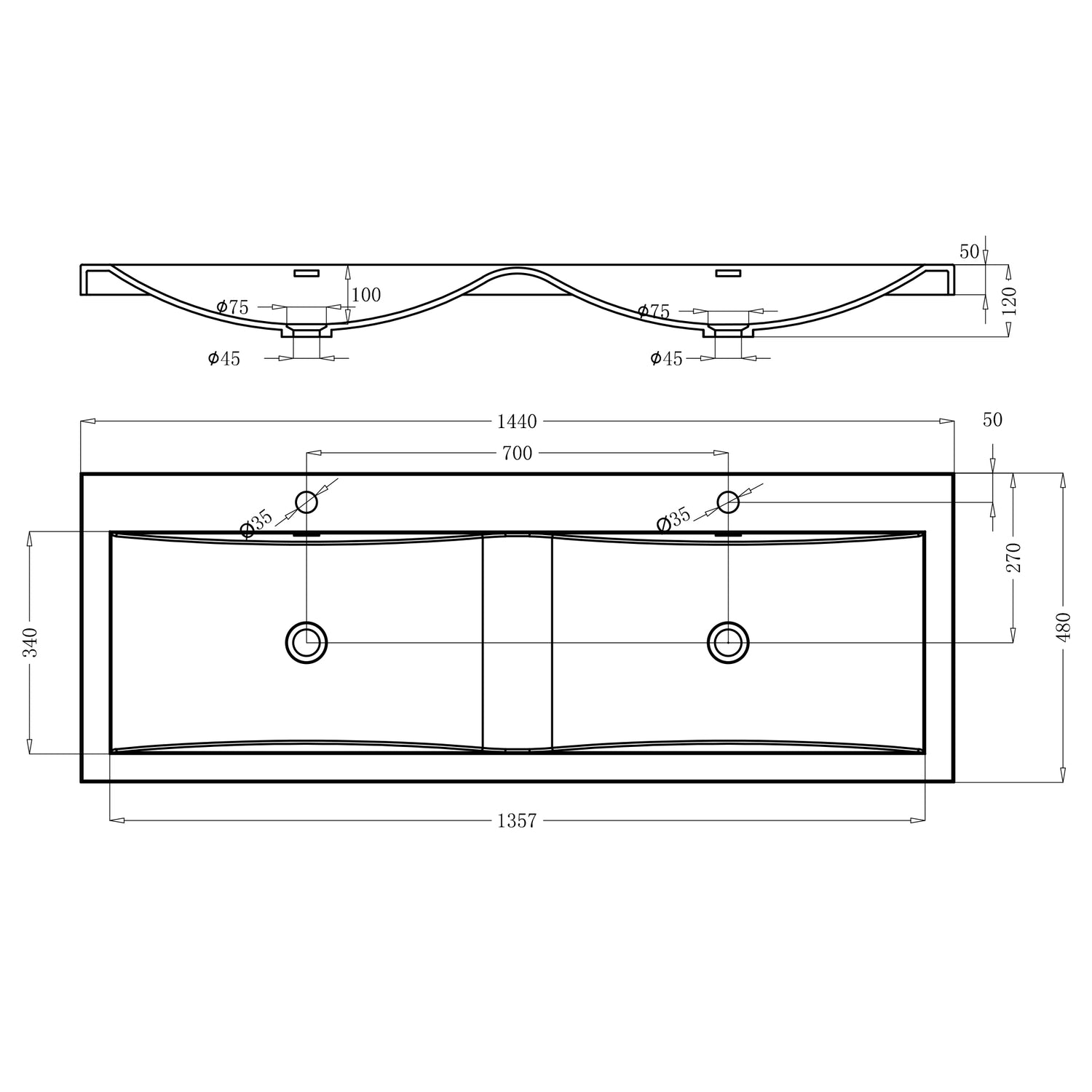 Doppelwaschbecken eignen sich vor allem für große Badezimmer und für größere Haushalte mit Kindern. Die 2 getrennten Waschbecken sind über eine abgerundete Trennbrücke miteinander verbunden. Die sichtbare Auflagefläche beträgt 5cm, insgesamt ist das Waschbecken 12cm hoch. Die Inbetriebnahme ist durch das genormte Ablaufloch und das Armaturenloch sehr einfach.