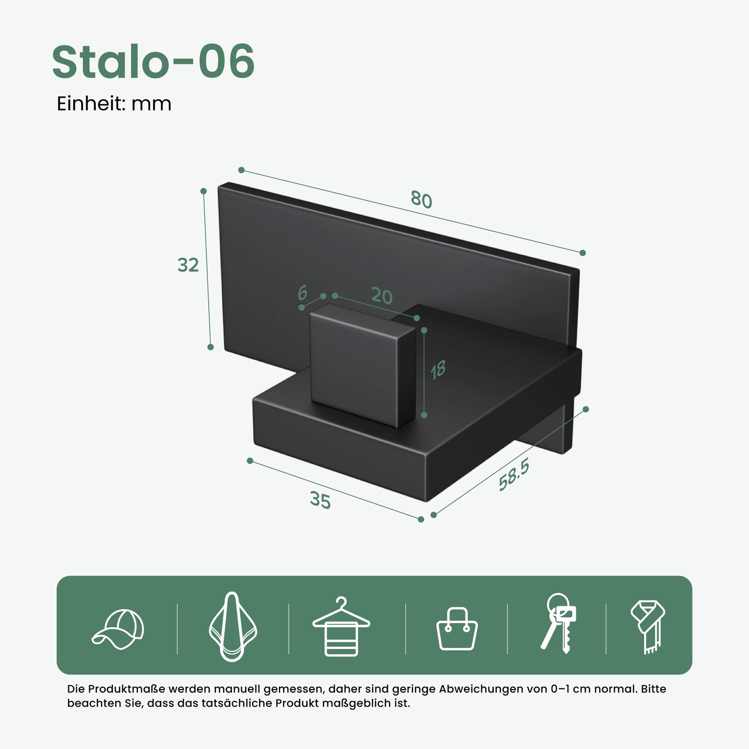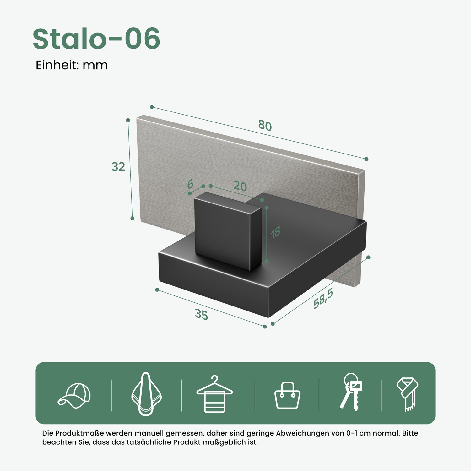 - Opciones versátiles: el diseño minimalista se integra perfectamente en estilos de vida modernos. Se puede usar de manera versátil, ya sea como gancho de pared en el pasillo, dormitorio, baño o en la cocina