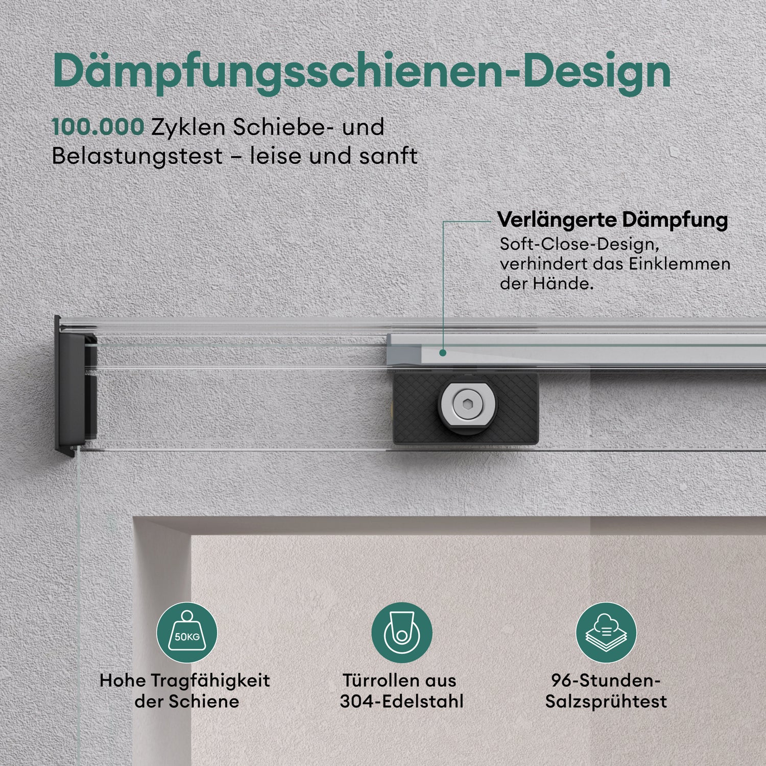 - Montaje sencillo: Color del vidrio: Vidrio cepillado; Color del perfil de la pared: Negro mate. El paquete incluye todas las piezas necesarias y las instrucciones de montaje, que permiten una instalación sin complicaciones.