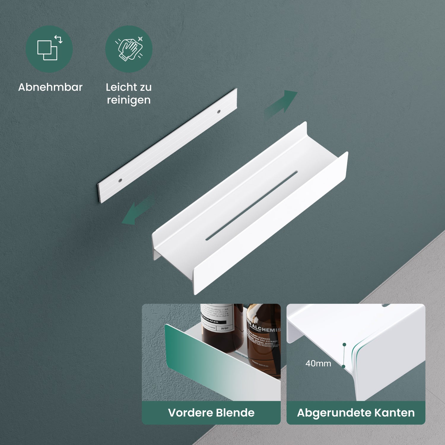 Estante de Ducha Glasvilla Reglo-03 Repisa de Pared 40 cm para Baño (Atornillable o Adhesiva)
