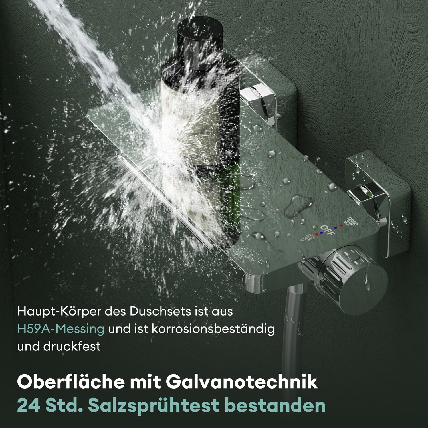- Verdrehsichere Duschschlauch: 1,5 m PVC-Schlauch mit verdrehsicherem Design, hitzebeständig bis 80 °C, nach DIN-Norm montierbar