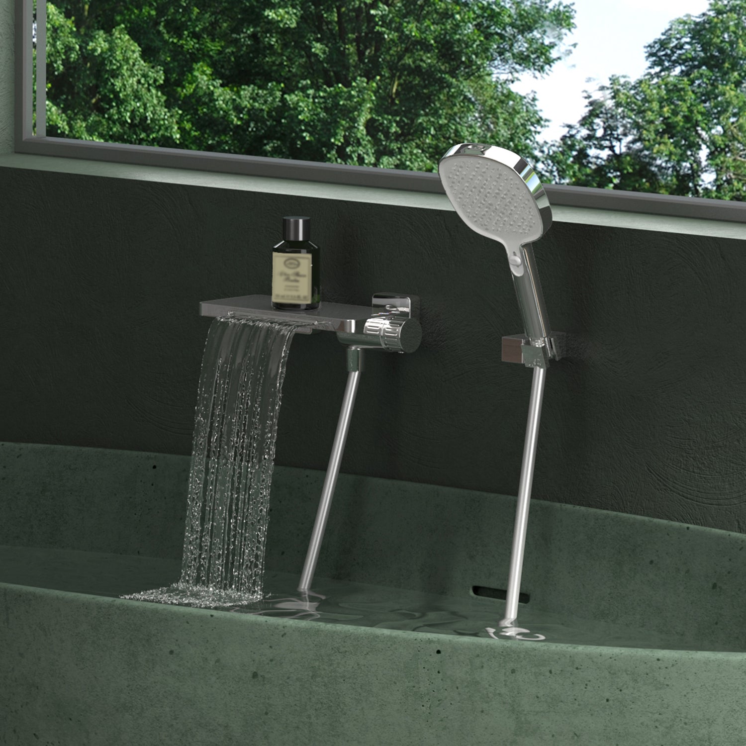 glasvilla Badewannenarmatur mit Handbrause Wasserfall Wannenarmatur Strahlarten Handbrause aus Messing inkl. Brausestange und Brauseschlauch