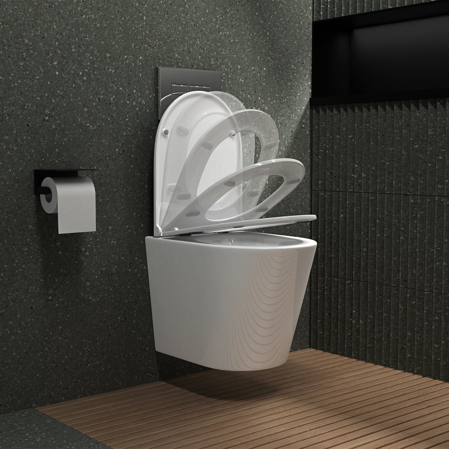 Questo WC non solo colpisce per il suo design, ma vi entusiasmerà anche nell'uso quotidiano. Il design semplice si integra perfettamente in qualsiasi bagno.