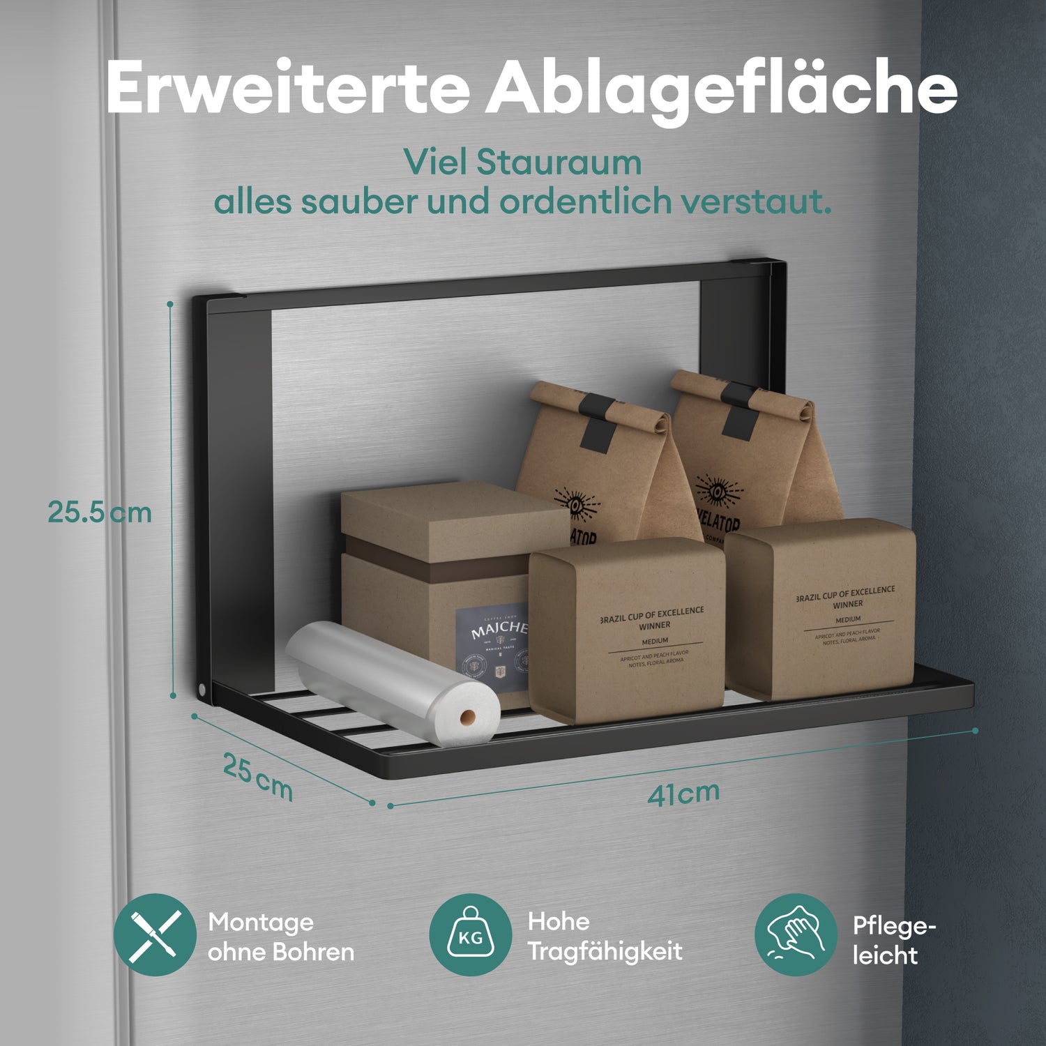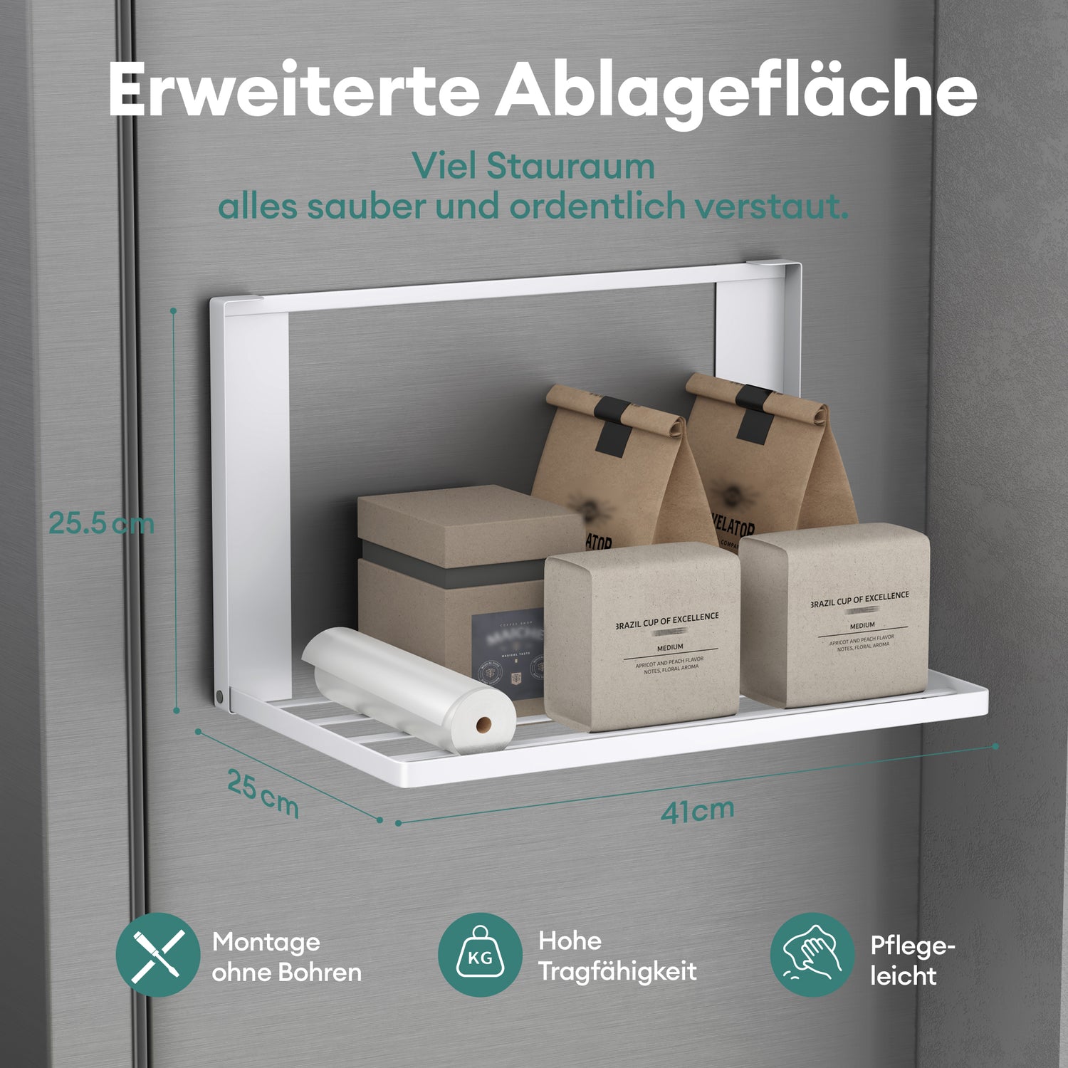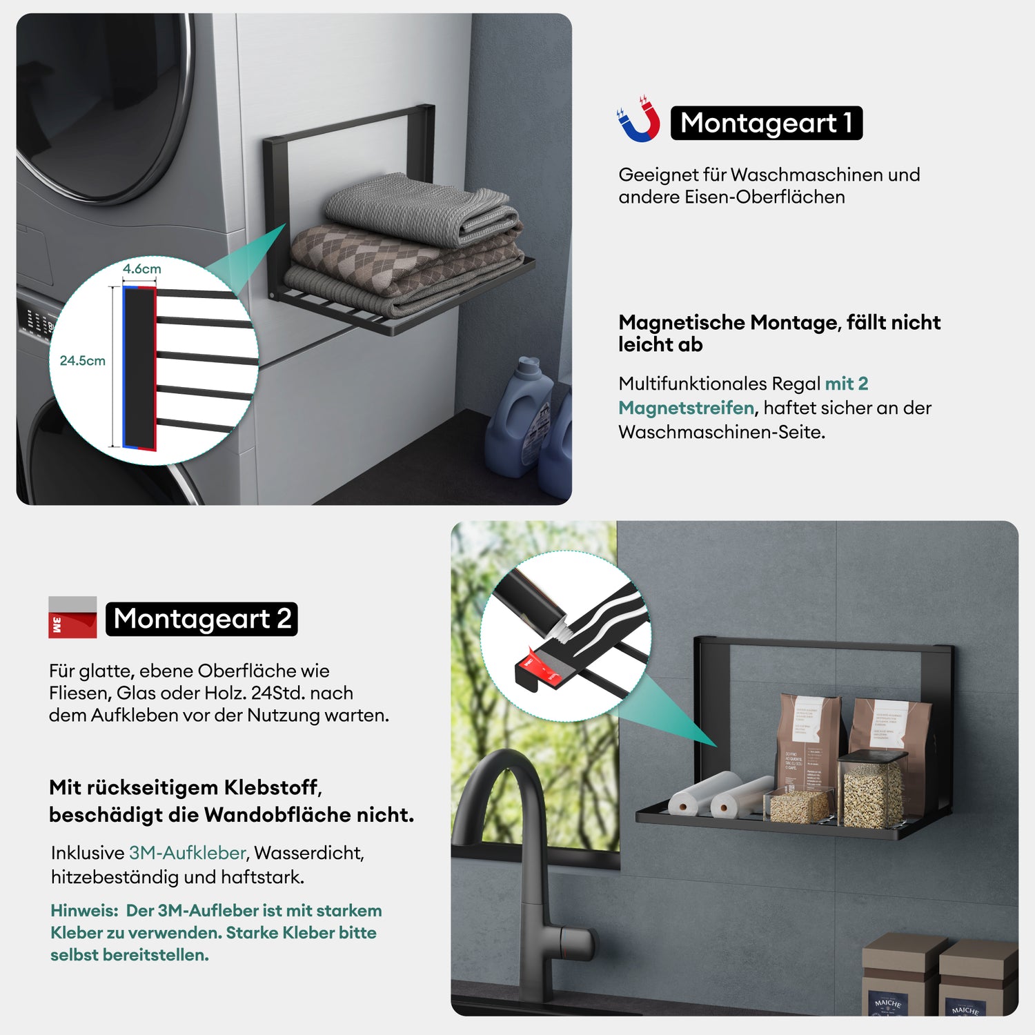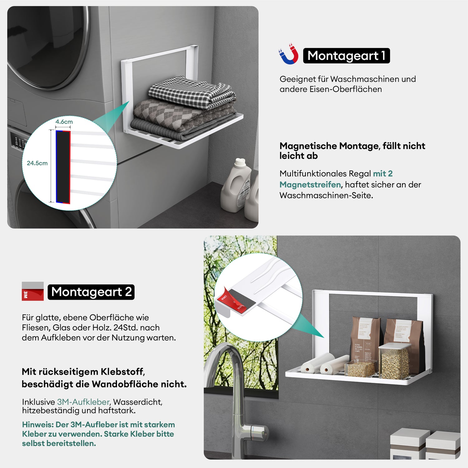 glasvolla Mensola Pieghevole per Lavatrice 41x25cm, Mensola Magnetica Lavatrice in Acciaio al Carbonio, Mensola da Parete Multifunzionale per Bagno e Cucina Folda-01